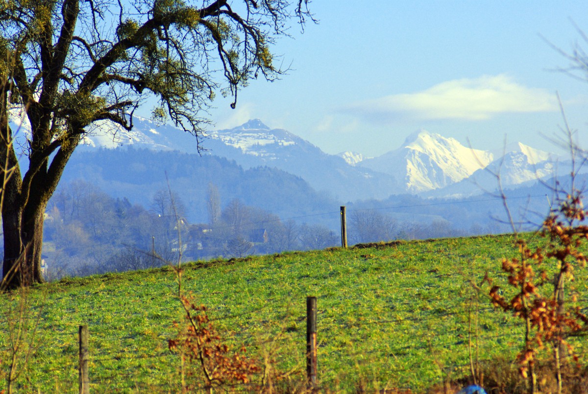 Our favourite stroll in Groisy takes us to the hamlet of Flagy with its old stone houses and farms. Our walk takes us to the high meadows well above the Chef-Lieu and the church. The views over the Parmelan, the Tournette, the Semnoz and other mountain peaks of the Annecy region are just breathtaking. Opposite are the Salève and in the far distance the Jura mountains.